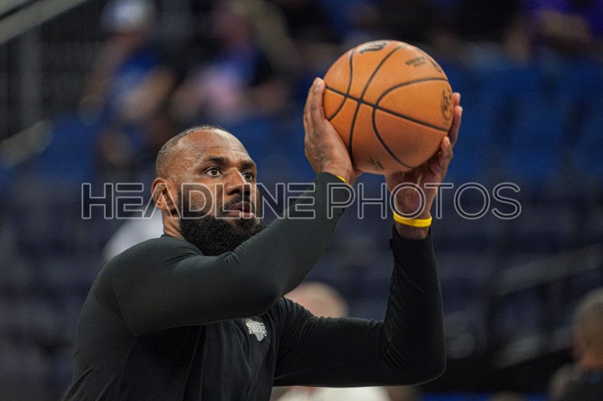 Orlando, Florida, USA, March 24, 2025, Los Angeles Lakers forward Lebron James #23 warming up at the Kia Center. (Photo Credit: Marty Jean-Louis)