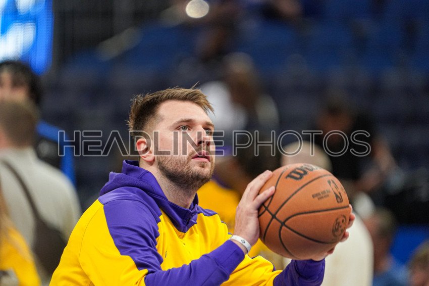 Orlando, Florida, USA, March 24, 2025, Los Angeles Lakers guard Luka Doncic #77 warming up at the Kia Center. (Photo Credit: Marty Jean-Louis)