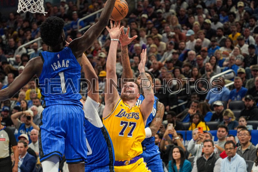 Orlando, Florida, USA, March 24, 2025, Los Angeles Lakers guard Luka Doncic #77 attempt to score during the first half at the Kia Center. (Photo Credit: Marty Jean-Louis)