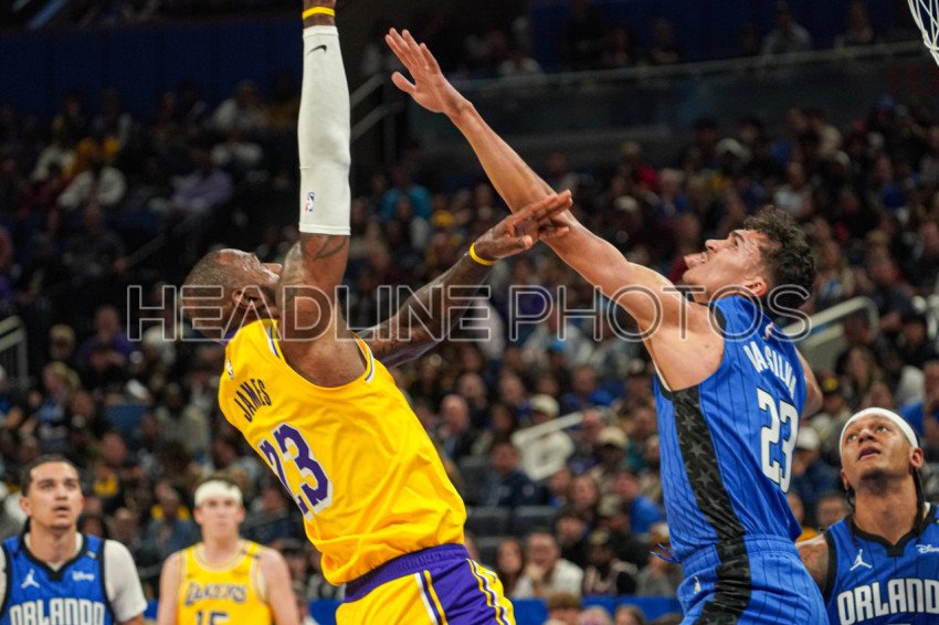 Orlando, Florida, USA, March 24, 2025, Los Angeles Lakers forward Lebron James during attempt to score during the first half at the Kia Center. (Photo Credit: Marty Jean-Louis)