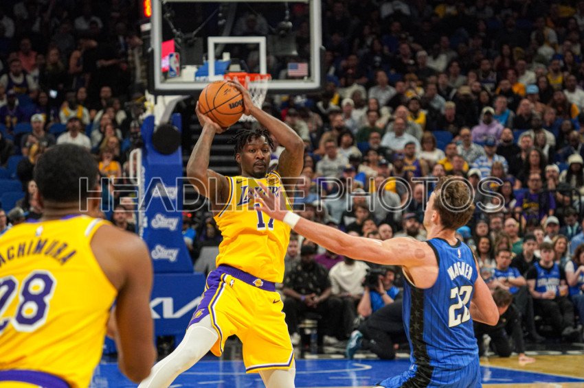 Orlando, Florida, USA, March 24, 2025, Los Angeles Lakers forward Dorian Finney-Smith #17 makes a pass at the Kia Center. (Photo Credit: Marty Jean-Louis)