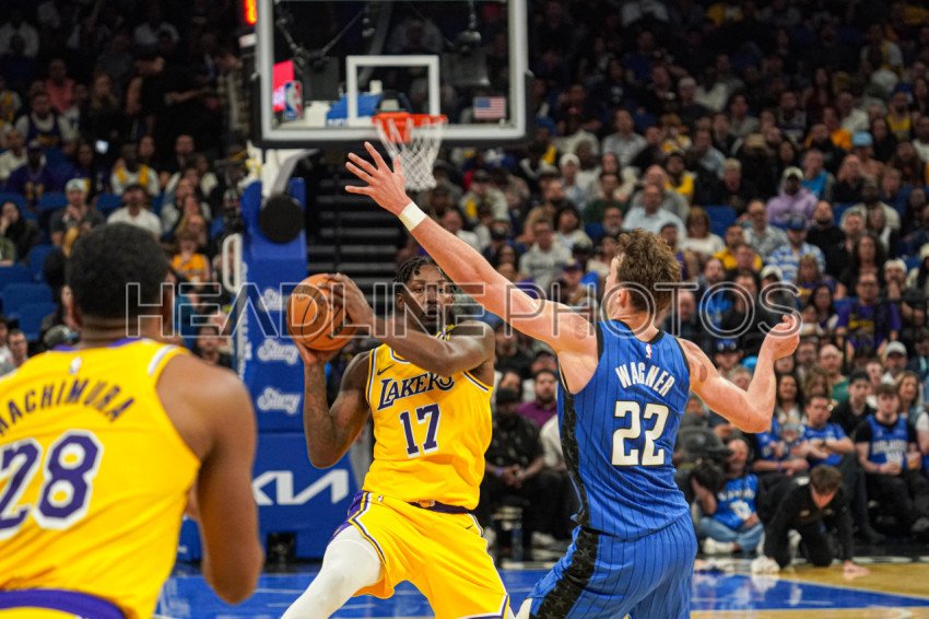 Orlando, Florida, USA, March 24, 2025, Los Angeles Lakers forward Dorian Finney-Smith #17 makes a pass at the Kia Center. (Photo Credit: Marty Jean-Louis)