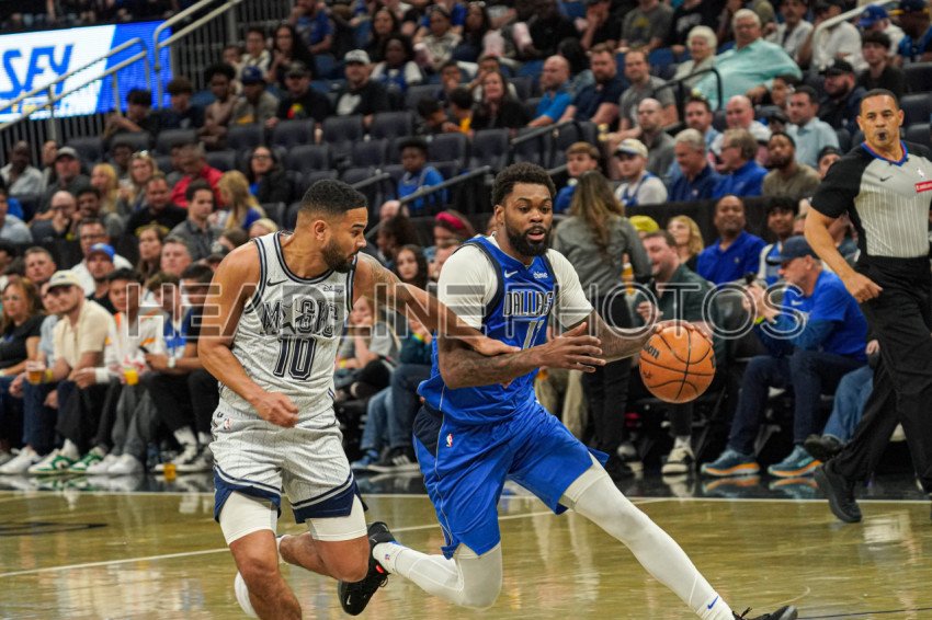 Orlando, Florida, USA, March 27, 2025, Dallas Mavericks forward Naji Marshall #13 rushes pass Cory Joseph #10 at the Kia Center. (Photo Credit: Marty Jean-Louis)
