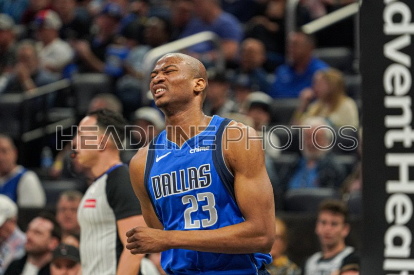 Orlando, Florida, USA, March 27, 2025, Dallas Mavericks center Kai Jones #23 reacts after an injury at the Kia Center. (Photo Credit: Marty Jean-Louis)