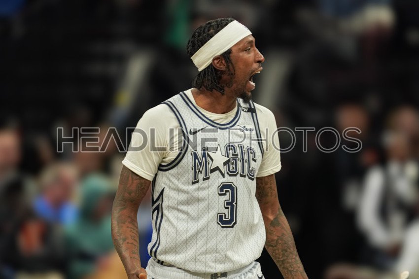 Orlando, Florida, USA, March 27, 2025, Orlando Magic guard Kentavious Caldwell-Pope #3 yells at the referee after a call at the Kia Center. (Photo Credit: Marty Jean-Louis)