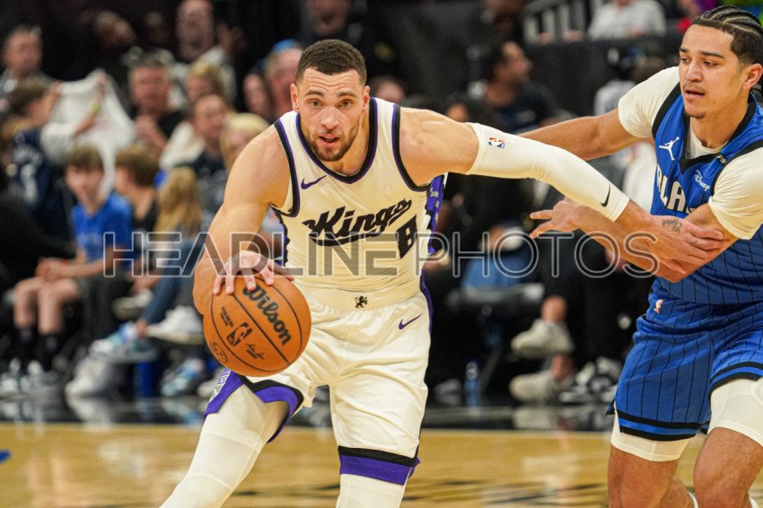 Orlando, Florida, USA, March 29, 2025, Sacramento Kings guard Zach LaVine #8 attempt to run pass Anthony Black #0 at the Kia Center. (Photo Credit: Marty Jean-Louis)