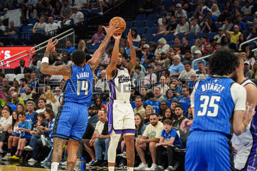 Orlando, Florida, USA, March 29, 2025, Sacramento Kings guard Malik Monk #0 shoots a three at the Kia Center. (Photo Credit: Marty Jean-Louis)