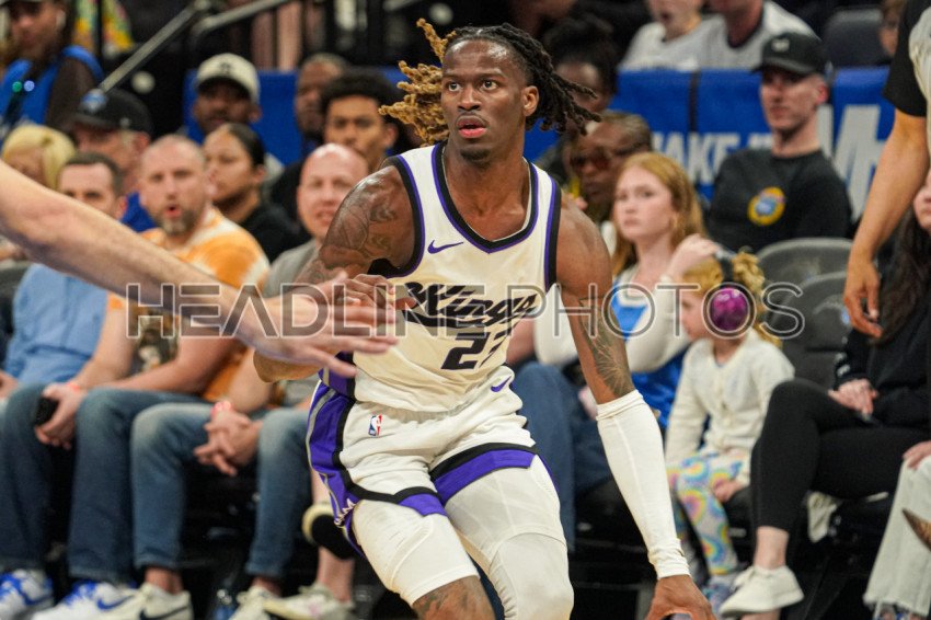 Orlando, Florida, USA, March 29, 2025, Sacramento Kings guard Kkeon Ellis #23 rushes forward at the Kia Center. (Photo Credit: Marty Jean-Louis)