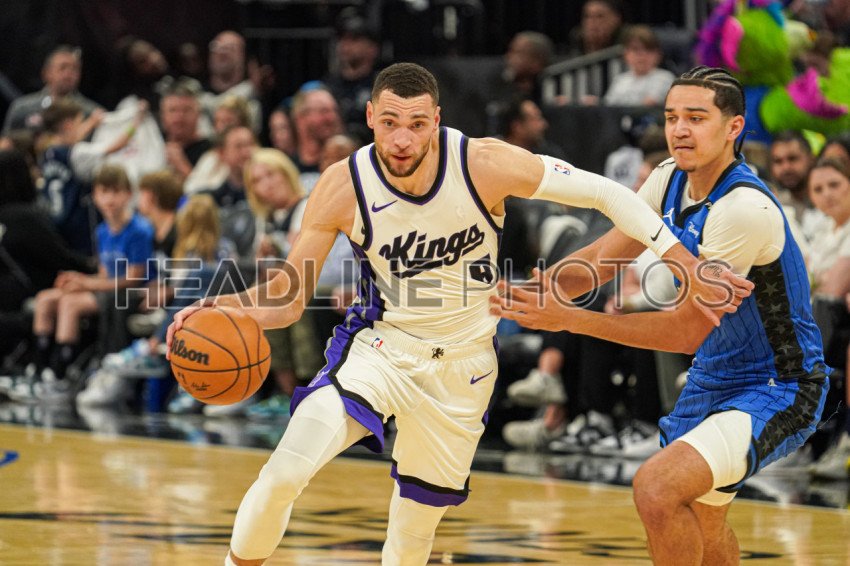 Orlando, Florida, USA, March 29, 2025, Sacramento Kings guard Zach LaVine #8 attempt to run pass Anthony Black #0 at the Kia Center. (Photo Credit: Marty Jean-Louis)