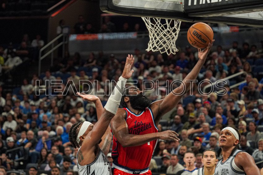 Orlando, Florida, USA, March 31, 2025, Los Angeles Clippers guard James Harden #1 makes a layup at the Kia Center. (Photo Credit: Marty Jean-Louis)