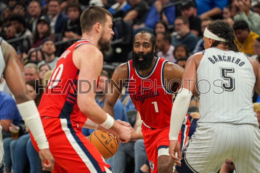 Orlando, Florida, USA, March 31, 2025, Los Angeles Clippers guard James Harden #1 moves forward at the Kia Center. (Photo Credit: Marty Jean-Louis)