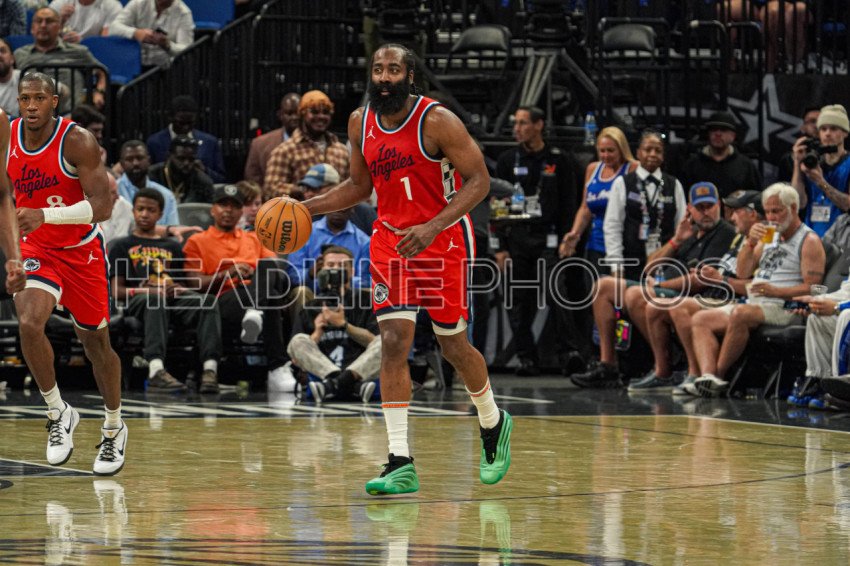 Orlando, Florida, USA, March 31, 2025, Los Angeles Clippers guard James Harden #1 moves forward at the Kia Center. (Photo Credit: Marty Jean-Louis)