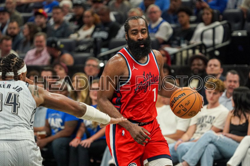 Orlando, Florida, USA, March 31, 2025, Los Angeles Clippers guard James Harden #1 moves forward at the Kia Center. (Photo Credit: Marty Jean-Louis)