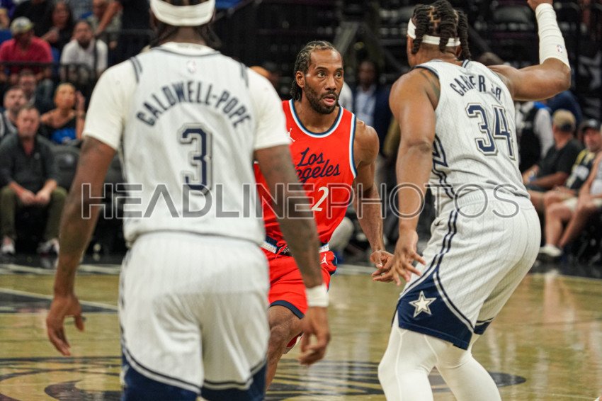 Orlando, Florida, USA, March 31, 2025, Los Angeles Clippers guard Kawhi Leonard #2 rushes forward at the Kia Center. (Photo Credit: Marty Jean-Louis)
