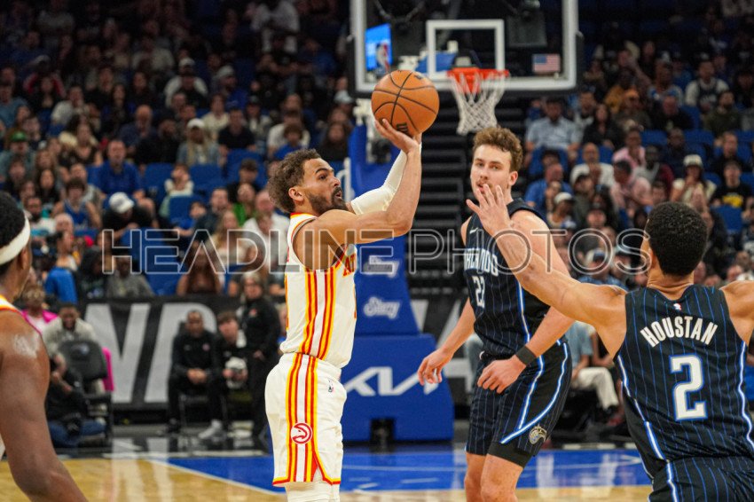 Orlando, Florida, USA, April 8, 2025, Atlanta Hawks guard Trae Young #11 shoots a three at the Kia Center. (Photo Credit: Marty Jean-Louis)