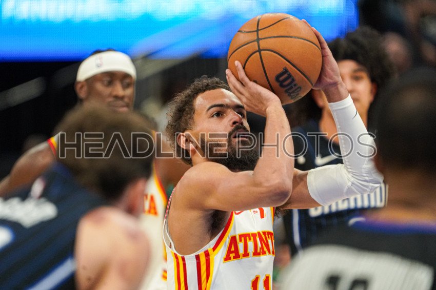 Orlando, Florida, USA, April 8, 2025, Atlanta Hawks guard Trae Young #11 shoots a free throw at the Kia Center. (Photo Credit: Marty Jean-Louis)