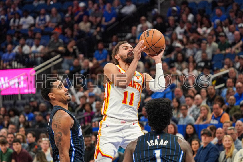 Orlando, Florida, USA, April 8, 2025, Atlanta Hawks guard Trae Young #11 attempt to score at the Kia Center. (Photo Credit: Marty Jean-Louis)
