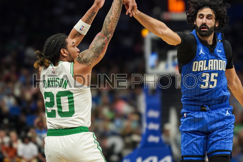 Orlando, Florida, USA, April 9, 2025, Boston Celtics guard JD Davison #20 shoots a three at the Kia Center. (Photo Credit: Marty Jean-Louis)