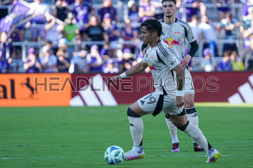 Orlando, Florida, USA, April 12, 2025, New York Red Bulls player Wikelman Carmona #19 runs across the field at Inter&Co Stadium. (Photo Credit: Marty Jean-Louis)