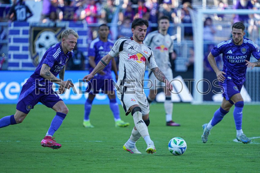 Orlando, Florida, USA, April 12, 2025, New York Red Bulls midfielder Felipe Carballo #20 makes a pass at Inter&Co Stadium. (Photo Credit: Marty Jean-Louis)