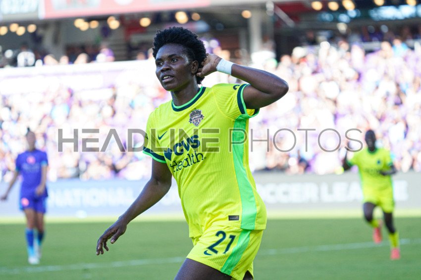 Orlando, Florida, USA, April 19, 2025, Washington Spirit forward Gift Monday #21 celebrate after scoring at Inter&Co Stadium. (Photo Credit: Marty Jean-Louis)