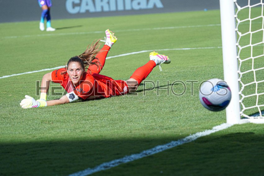 Orlando, Florida, USA, April 19, 2025, Washington Spirit goalkeeper Aubrey Kingsbury #1 watch as the ball go out at Inter&Co Stadium. (Photo Credit: Marty Jean-Louis)