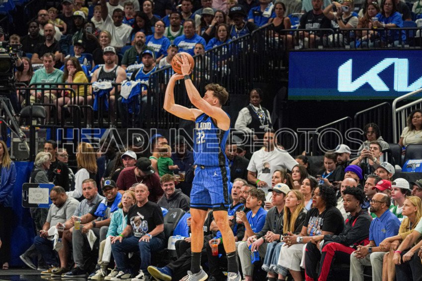 Orlando, Florida, USA, April 25, 2025, Orlando Magic forward Franz Wagner #22 shoot a three at the Kia Center. (Photo Credit: Marty Jean-Louis)