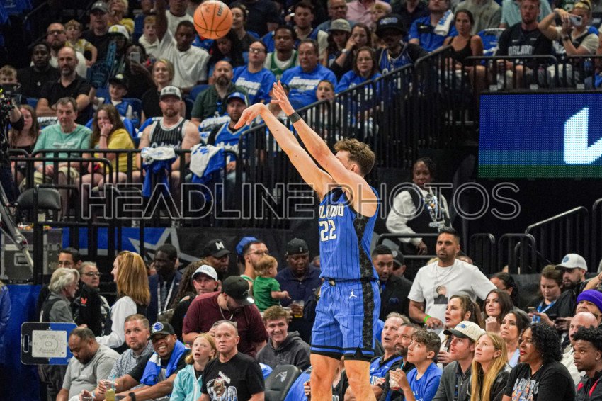 Orlando, Florida, USA, April 25, 2025, Orlando Magic forward Franz Wagner #22 shoot a three at the Kia Center. (Photo Credit: Marty Jean-Louis)