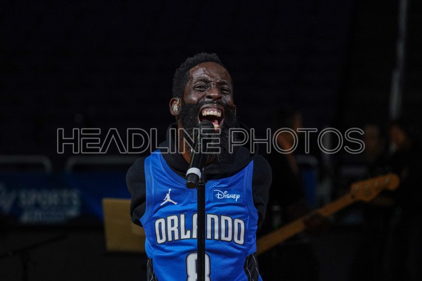 Orlando, Florida, USA, April 1, 2022, Tye Tribbett performing during Faith & Family night after the Toronto Raptors vs Orlando Magic at the Amway Center. (Photo Credit: Marty Jean-Louis)