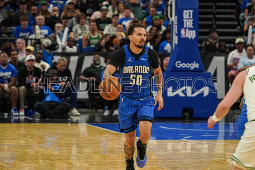 Orlando, Florida, USA, April 25, 2025, Orlando Magic guard Cole Anthony #50 rushes forward at the Kia Center. (Photo Credit: Marty Jean-Louis)