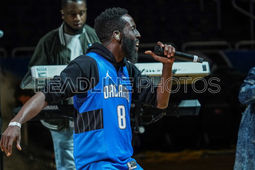 Orlando, Florida, USA, April 1, 2022, Tye Tribbett performing during Faith & Family night after the Toronto Raptors vs Orlando Magic at the Amway Center. (Photo Credit: Marty Jean-Louis)