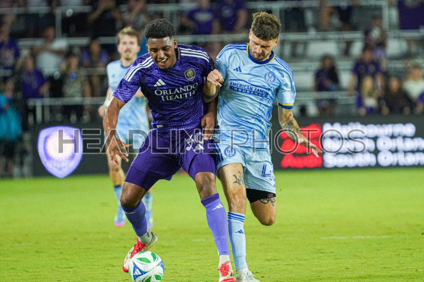 Orlando, Florida, USA, April 26, 2025, Orlando City SC player Alex Freeman fight to keep the ball at Inter&Co Stadium. (Photo Credit: Marty Jean-Louis)