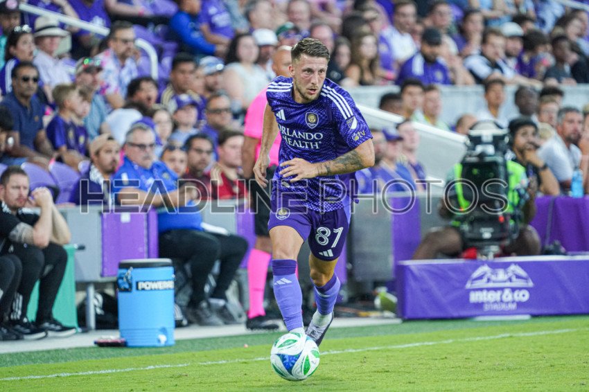 Orlando, Florida, USA, April 26, 2025, Orlando City SC player Marco Pašalić #87 runs up field at Inter&Co Stadium. (Photo Credit: Marty Jean-Louis)