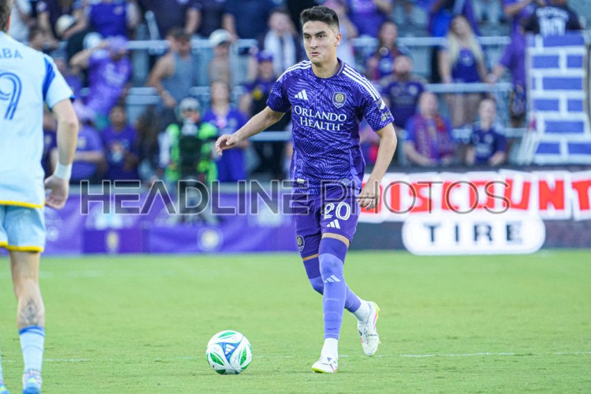 Orlando, Florida, USA, April 26, 2025, Orlando City SC midfielder Eduard Atuesta #20 runs up field at Inter&Co Stadium. (Photo Credit: Marty Jean-Louis)