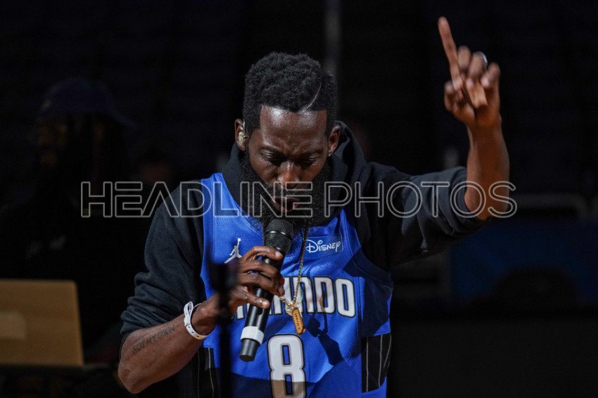 Orlando, Florida, USA, April 1, 2022, Tye Tribbett performing during Faith & Family night after the Toronto Raptors vs Orlando Magic at the Amway Center. (Photo Credit: Marty Jean-Louis)