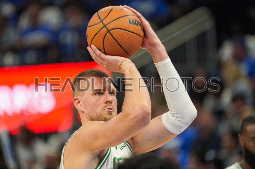 Orlando, Florida, USA, April 27, 2025, Boston Celtics center Kristaps Porzingis #8 shoots a free throwat the Kia Center. (Photo Credit: Marty Jean-Louis)