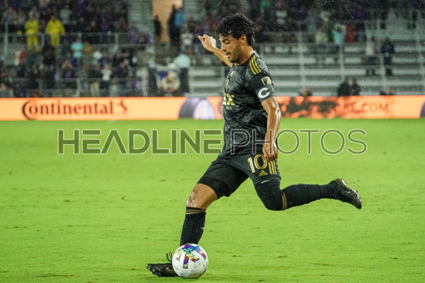 Orlando, Florida, USA, April 2, 2022, LAFC forward Carlos Vela #10 attempt to score at Exploria Stadium. (Photo Credit: Marty Jean-Louis)