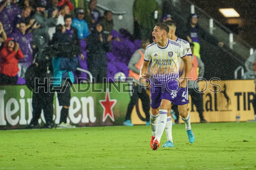 Orlando, Florida, USA, April 2, 2022, Orlando City SC defender Rodrigo Schlegel #15 reacts after a goal at Exploria Stadium. (Photo Credit: Marty Jean-Louis)