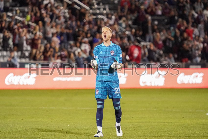 Denver, Colorado, USA, November 7, 2021, Colorado Rapids Goalkeeper William Yarbrough #22 celebrate after winning the match at Dick’s Sporting Goods Park (Photo Credit: Marty Jean-Louis)