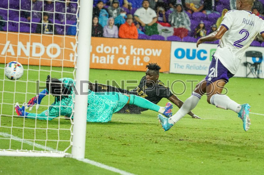 Orlando, Florida, USA, April 2, 2022, Orlando City SC Goalkeeper Pedro Gallese #1 attempt to make a save at Exploria Stadium. (Photo Credit: Marty Jean-Louis)