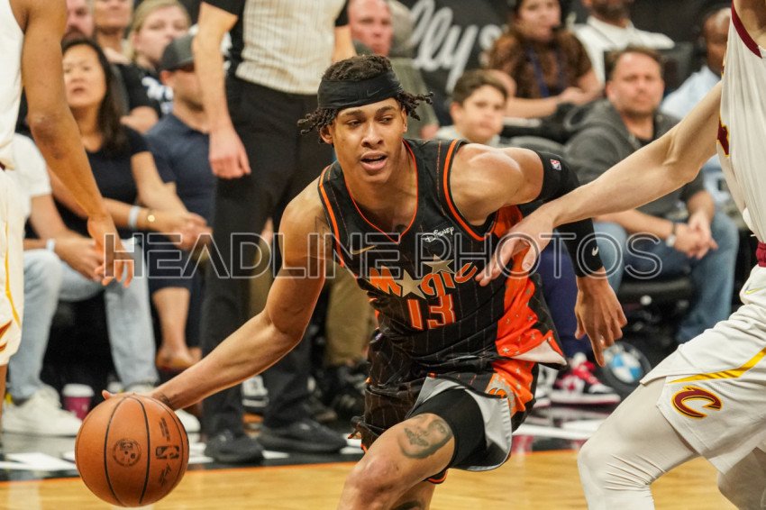 Orlando, Florida, USA, April 5, 2022, Orlando Magic Point Guard R.J. Hampton #13 attempt to run pass Cleveland players in the second half at the Amway Center. (Photo Credit: Marty Jean-Louis)