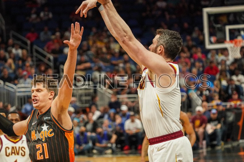 Orlando, Florida, USA, April 5, 2022, Cleveland Cavaliers Power Forward Kevin Love #0 shoots a three point shot in the first half at the Amway Center. (Photo Credit: Marty Jean-Louis)