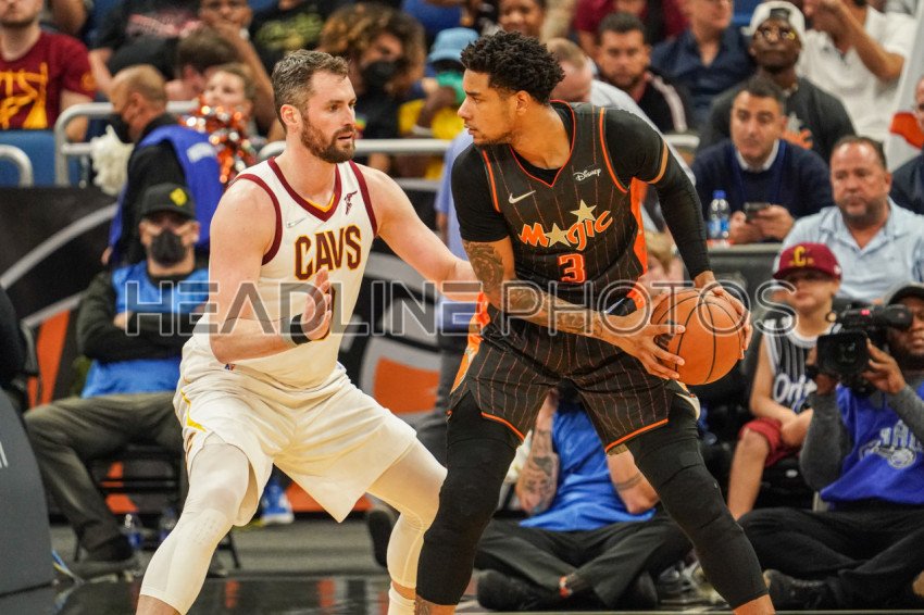 Orlando, Florida, USA, April 5, 2022, Orlando Magic Power Forward Chuma Okeke #3 stares at Kevin Love #0 in the first half at the Amway Center. (Photo Credit: Marty Jean-Louis)