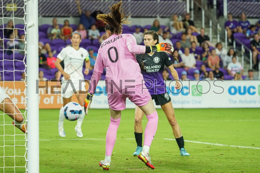 Orlando, Florida, USA, April 16, 2022, North Carolina Courage Goalkeeper Katelyn Rowland #0 misses the ball during the second half at Exploria Stadium. (Photo Credit: Marty Jean-Louis)