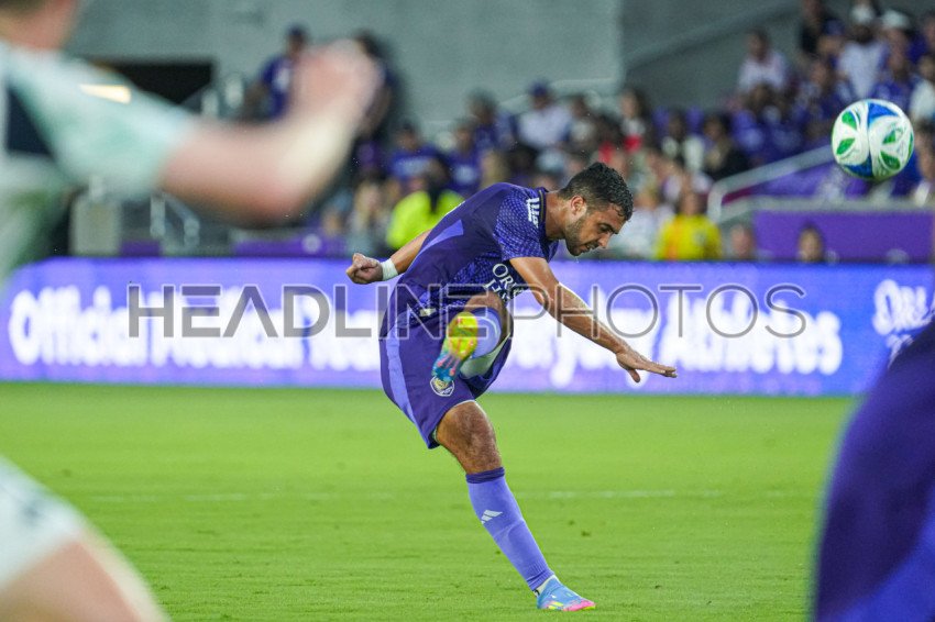 Orlando, Florida, USA, May 10, 2025, Orlando City SC midfielder Martín Ojeda #10 makes a free kick at Inter&Co Stadium. (Photo Credit: Marty Jean-Louis)