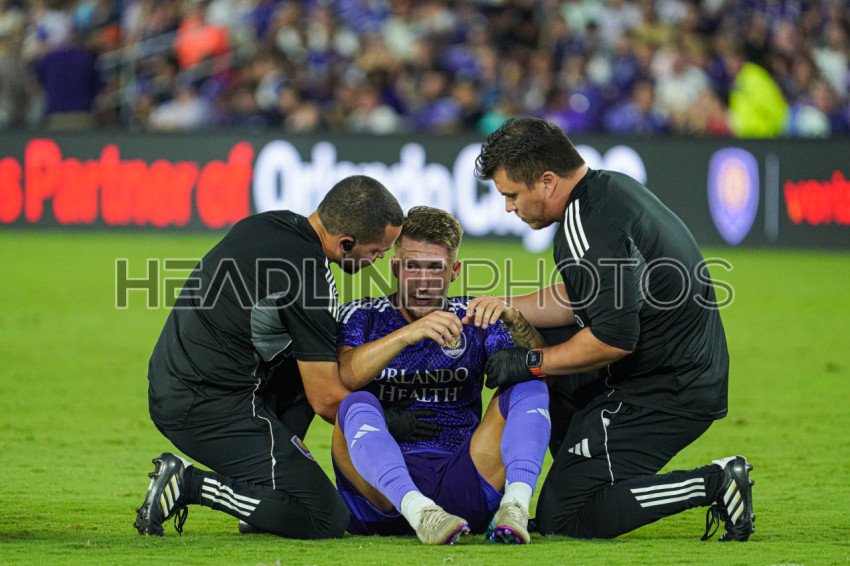Orlando, Florida, USA, May 31, 2025, Orlando City SC player Marco Pasalic #87 is seen by the medical staff at Inter&Co Stadium. (Photo Credit: Marty Jean-Louis)