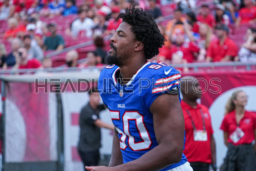 Tampa Bay, Florida, USA, August 23, 2025, Buffalo Bills player Greg Rousseau #50 at Raymond James Stadium. (Photo Credit: Marty Jean-Louis)