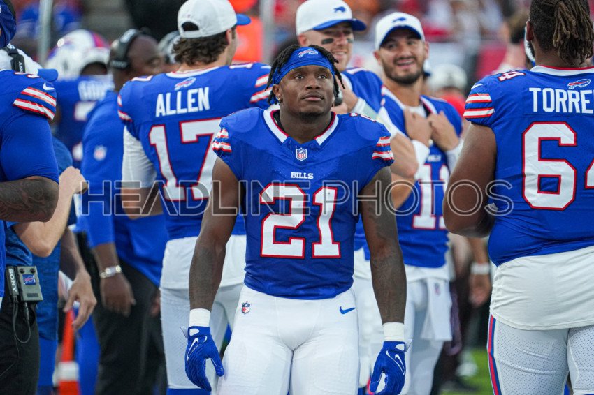 Tampa Bay, Florida, USA, August 23, 2025, Buffalo Bills player Darrynton Evans #21 at Raymond James Stadium. (Photo Credit: Marty Jean-Louis)