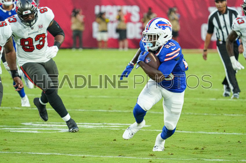 Tampa Bay, Florida, USA, August 23, 2025, Buffalo Bills runningback Frank Gore Jr. #20 at Raymond James Stadium. (Photo Credit: Marty Jean-Louis)