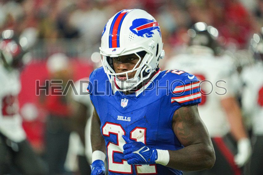 Tampa Bay, Florida, USA, August 23, 2025, Buffalo Bills player Darrynton Evans #21 at Raymond James Stadium. (Photo Credit: Marty Jean-Louis)